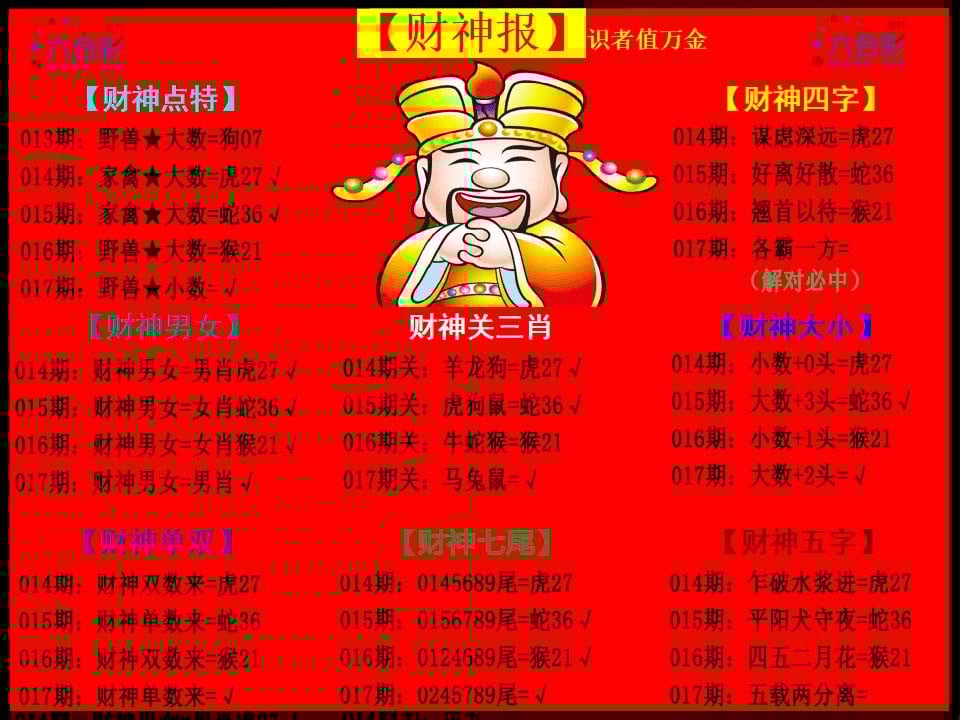 017期: 参赛帖💯【老财迷】💯 公式⑥肖💯 内幕的资料去杀庄